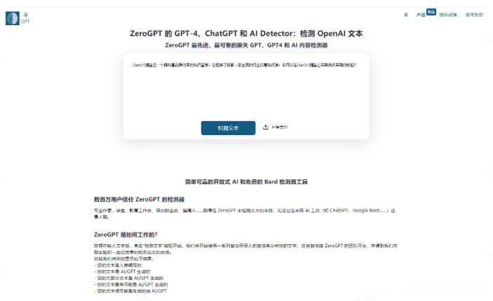 这是一个免费使用的零点GPT - Chat GPT、Open AI 和人工智能文本检测工具