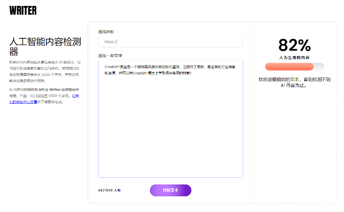 这也是一款无需登录即可使用的在线检测工具,在线使用非常便捷。但需要注意的是字符数量可能会受到限制。对于需要处理长文本的情况亲测体验非常满意。建议将待测内容分段进行检查以避免可能出现的问题从而确保测试结果的准确性与可靠性