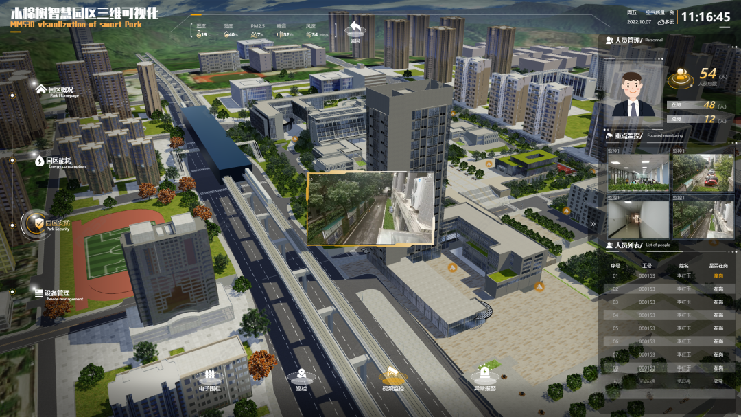 mms3D集成无缝对接的视频监控功能,对园区周边进行了24小时动环安防部署,实现了全方位无死角的周边监控。该系统与火灾报警、消防系统、人员管理等系统实现了集成化联动,管理人员可通过实时监控视频全面查看现场情况,运维人员则可实现全方位、实时化、透明化的管理流程。