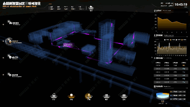 MMS3D技术通过融合大数据、物联网和智能应用等先进技术,实现了与物联网业务系统的深度联动。该系统通过数据交互展示功能,有效打通了数据壁垒,实现了数据的全面共享。在园区管理中,运管理人员借助实时监测、数据分析和智慧化应对策略,对园区资产布局、安防监控、消防管理、能耗调控以及物联网基础设施等进行全面管理。这些关键指标均可以通过统一的可视化平台展示,从而实现了“一屏通览”的管理目标,推动园区治理迈向“一网统管”的新阶段。