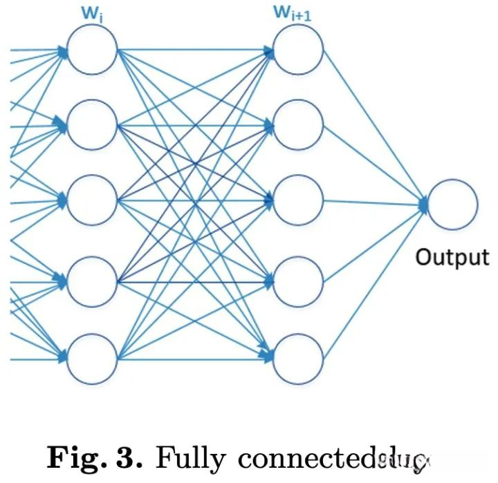 全连通层(Fully connected layer)如图3所示。这一层中的每个神经元都与上一层神经元相连,因此称为全连通层。该连接表示特征的权重,就像一个完整的图形。这一层的运算是上一层的输出神经元的值与神经元的权值的点积,这个函数类似于神经网络中的隐含层。只有由乘法和加法函数组成的点积函数,所以我们可以在加密数据上使用HE。
