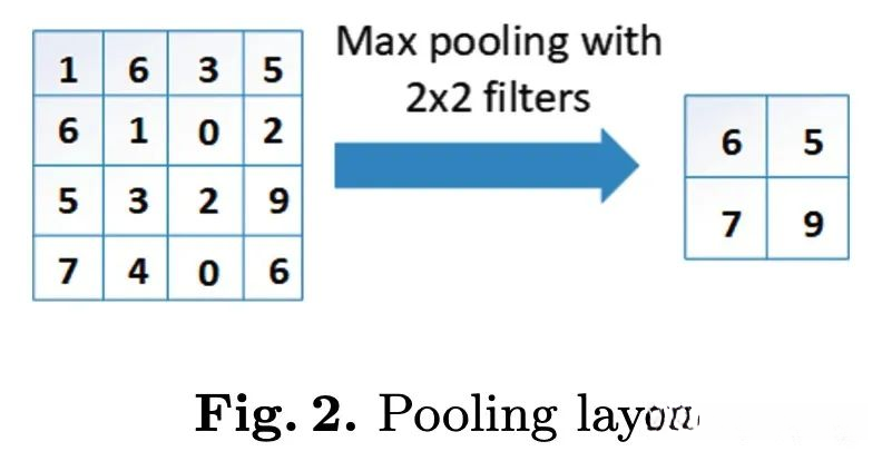 如图2所示,池化层(Pooling layer)是一个采样层,其目的是减小数据的大小。共有两种池:最大池和平均池。在HE中,我们不能使用最大池函数,因为我们不能搜索加密数据的最大值。因此,平均池是实施HE的解决方案。平均池计算值的总和,因此这里只有加法运算,可以用于加密的数据。