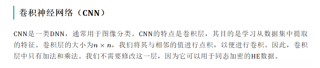 由Graepel等人开发的ML Confidential是一个工作在HE方案上的改进的CNN。他们使用多项式逼近替身非线性激活函数。他们使用基于云服务的场景,利用他们所提出的理论以确保数据在客户端和服务器之间传输期间的保密性。首先,他们进行密钥生成,为每个客户端生成公钥和私钥。然后,客户端数据使用他进行加密,并传输到服务器。云端服务器利用加密后的数据进行训练,并利用训练模型对测试数据集进行分类。