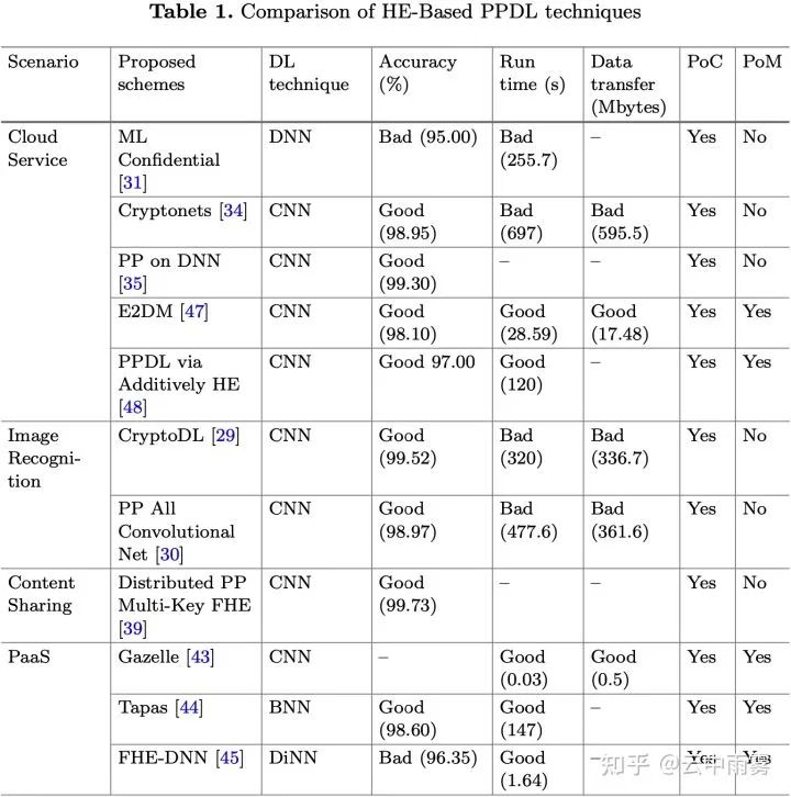 下表说明了基于我们的指标的每种基于HE的PPDL方法的比较。我们采用各自论文中的比较数据,因为我们认为这是可能达到的最好结果。我们不会重新执行他们的代码,因为并不是所有的代码都是公开的。
