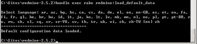 bundle exec rake redmine:load_default_data