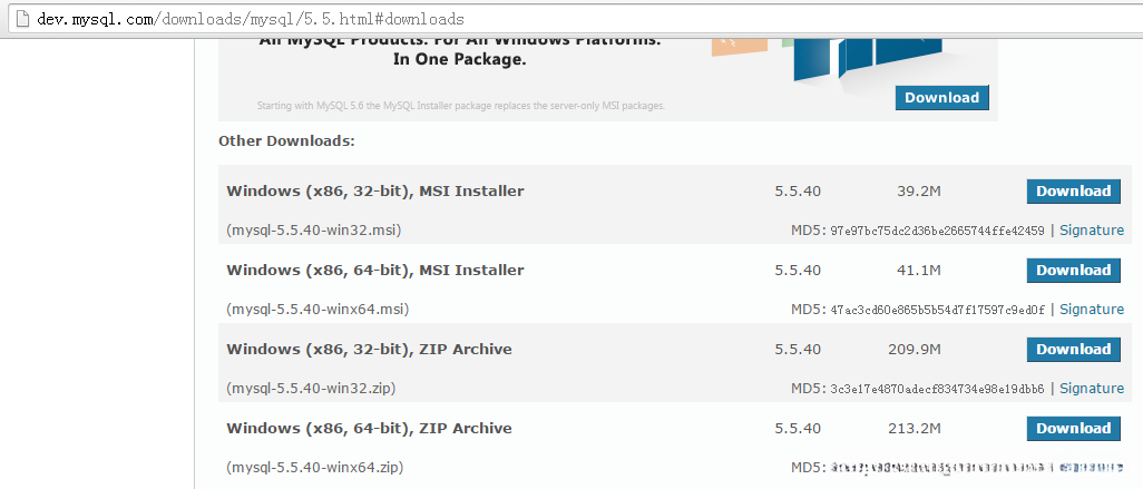 Redmine支持 MySQL 作为数据库后端,需要 5.0 或更高的版本。我选择社区版 server ,版本号为 5.5.40 。
