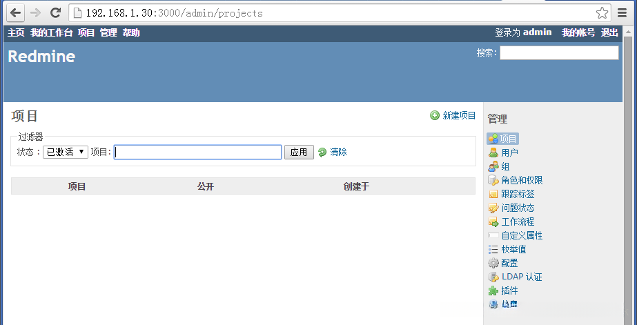 恭喜你, redmine 已成功启动!