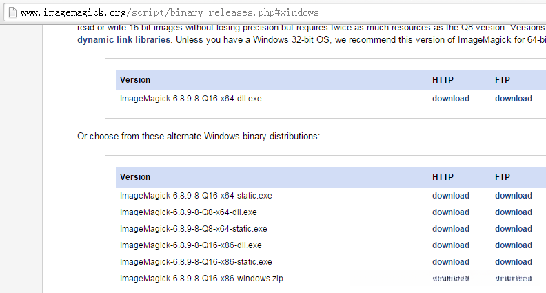 选择 ImageMagick-6.8.9-8-Q16-x86-dll.exe 那个下载吧。然后运行它。