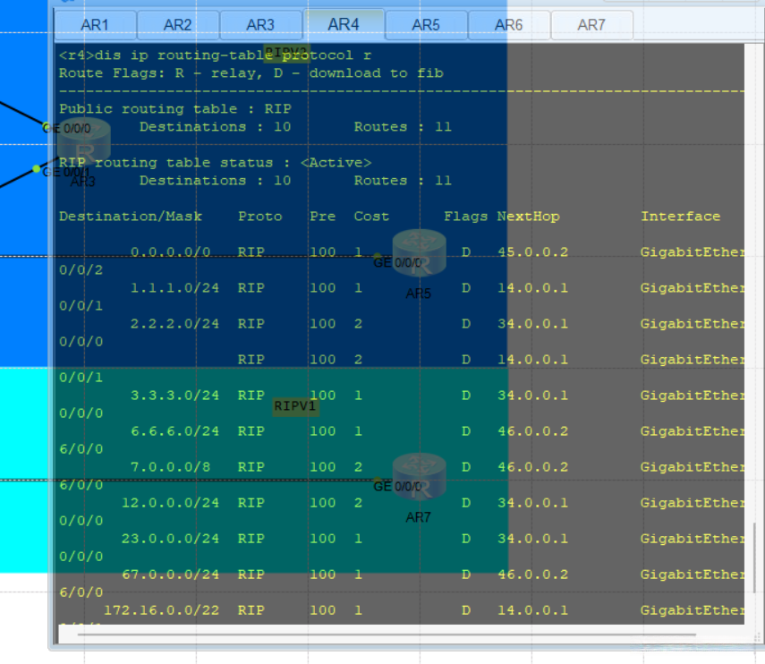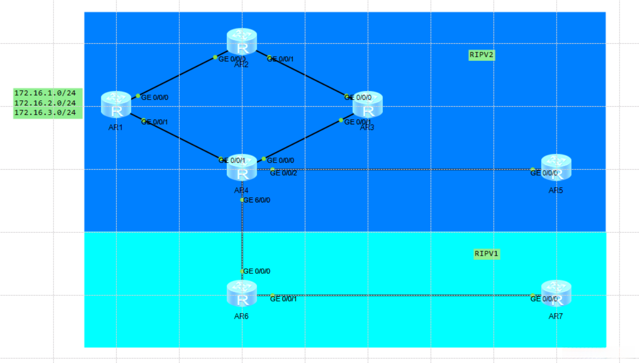 为R6路由器配置参数设置,使其能够同时识别采用 RIPv2 协议的网络策略;从而实现该路由器与相邻节点路由器(如 R7)之间的互联。
