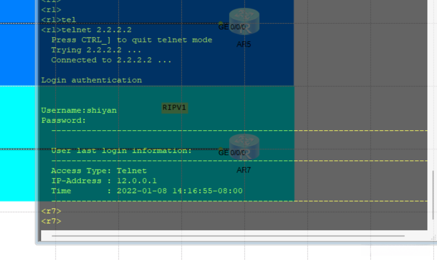 R1 Telnet R2 环回实际 Telnet 到 R7 上