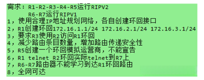 根据要求将不同的路由器启用RIPV1、RIPV2协议,并进行宣告