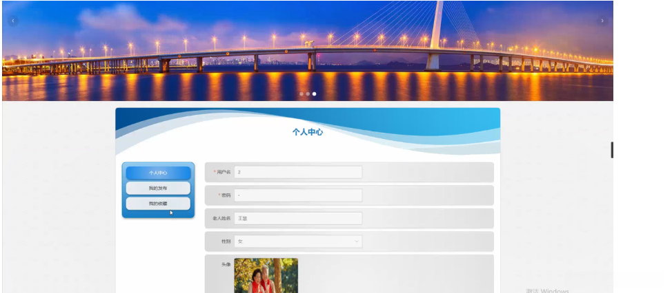 个人中心;在个人中心页面可以录入个人详细信息以完成数据更新流程,并且能够对发布内容和收藏作品进行详细管理;如图5-4所示。