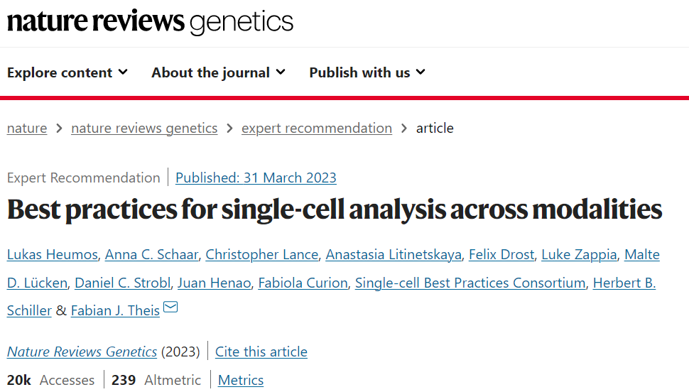 Heumos, L., Schaar, A.C., Lance, C. et al. Best practices for single-cell analysis across modalities. Nat Rev Genet (2023). https://doi.org/10.1038/s41576-023-00586-w