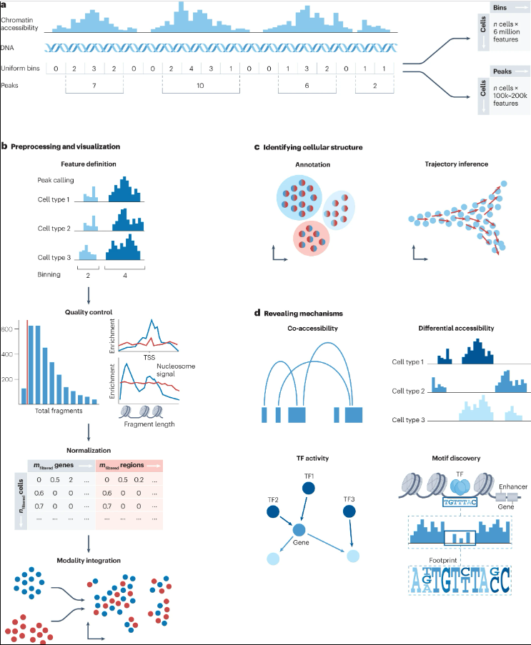分析调控元件对于解读细胞多样性和理解细胞决策至关重要。基因表达受调控机制的复杂相互作用控制,包括表观遗传学和染色质可及性。为了深入了解单细胞水平上染色质状态的动力学,scATAC-seq测量单个细胞中全基因组染色质的可及性。