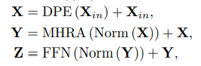 输入Xin(CTH*W),首先使用DPE向所有的token中添加3D位置信息;