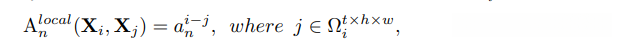 RA学习small tube Ωi(thw)中 当前token Xi 与 其他token Xj 之间的局部时空相似性: