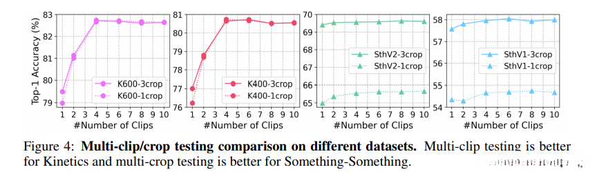 对于multi-clip testing,以步长4采样效果最好。