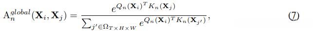 Xj是全局3Dtube(THW)中的any token,Q和K是两个不同的线性映射。