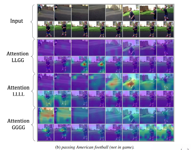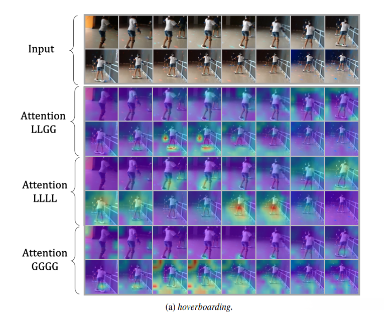 playing guitar and strumming guitar are difficult to be classified, since their spatial contents are almost the same 这些类别需要长程依赖,因为GGGG效果更好。