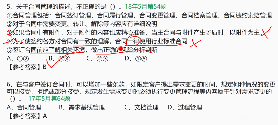 要注意合同管理,不属于十大管理,但是在案例分析和论文中。 有考过。