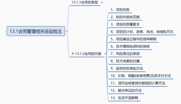 合同管理相关基础概念有合同的类型,合同的内容两部分。