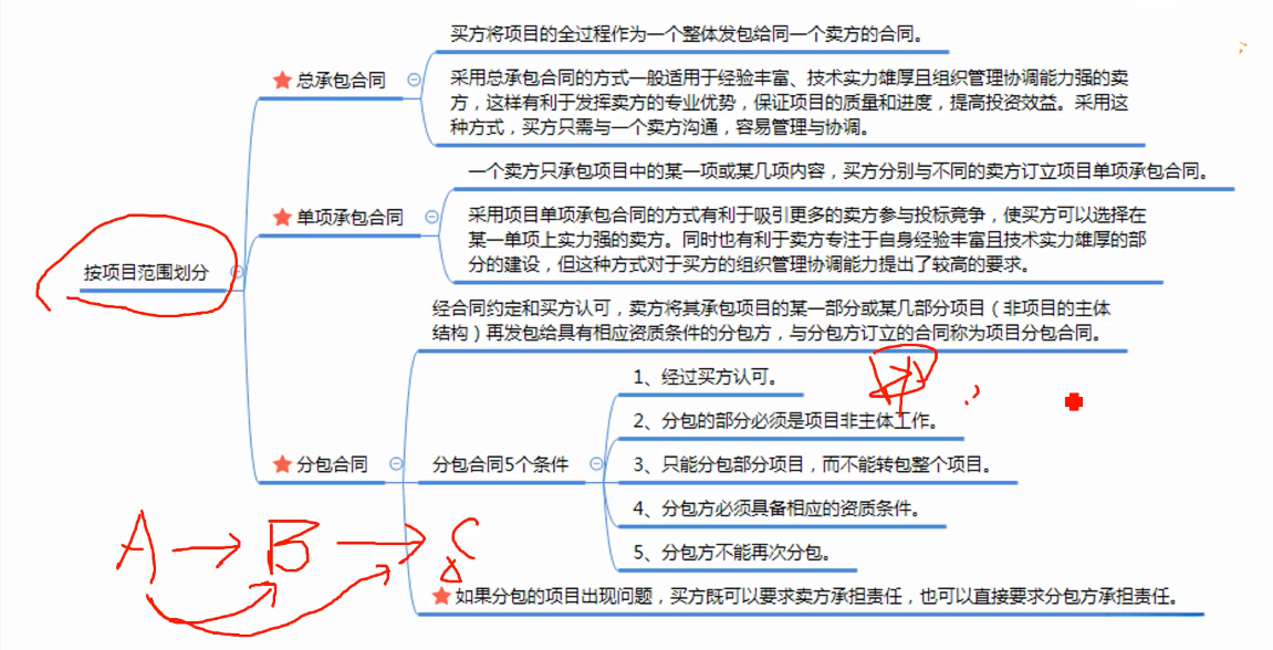 1.项目范围划分为。总承包合同,单项承包合同。以及分包合同。