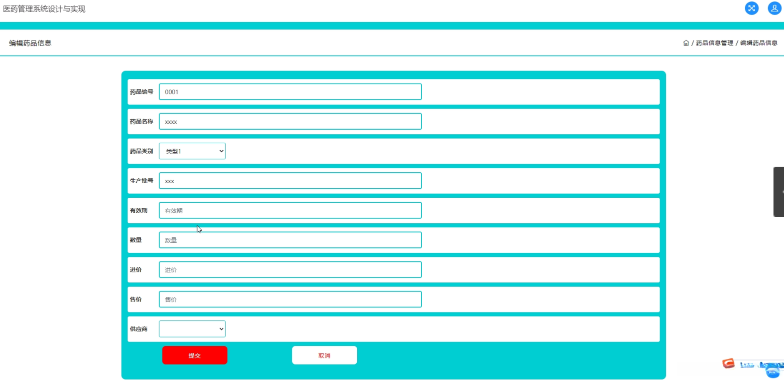 医药管理系统设计与实现(JSP+java+springmvc+mysql+MyBatis)