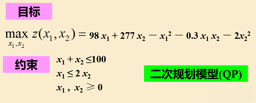 若还要求产量为整数,则是整数二次规划模型**(IQP)。**