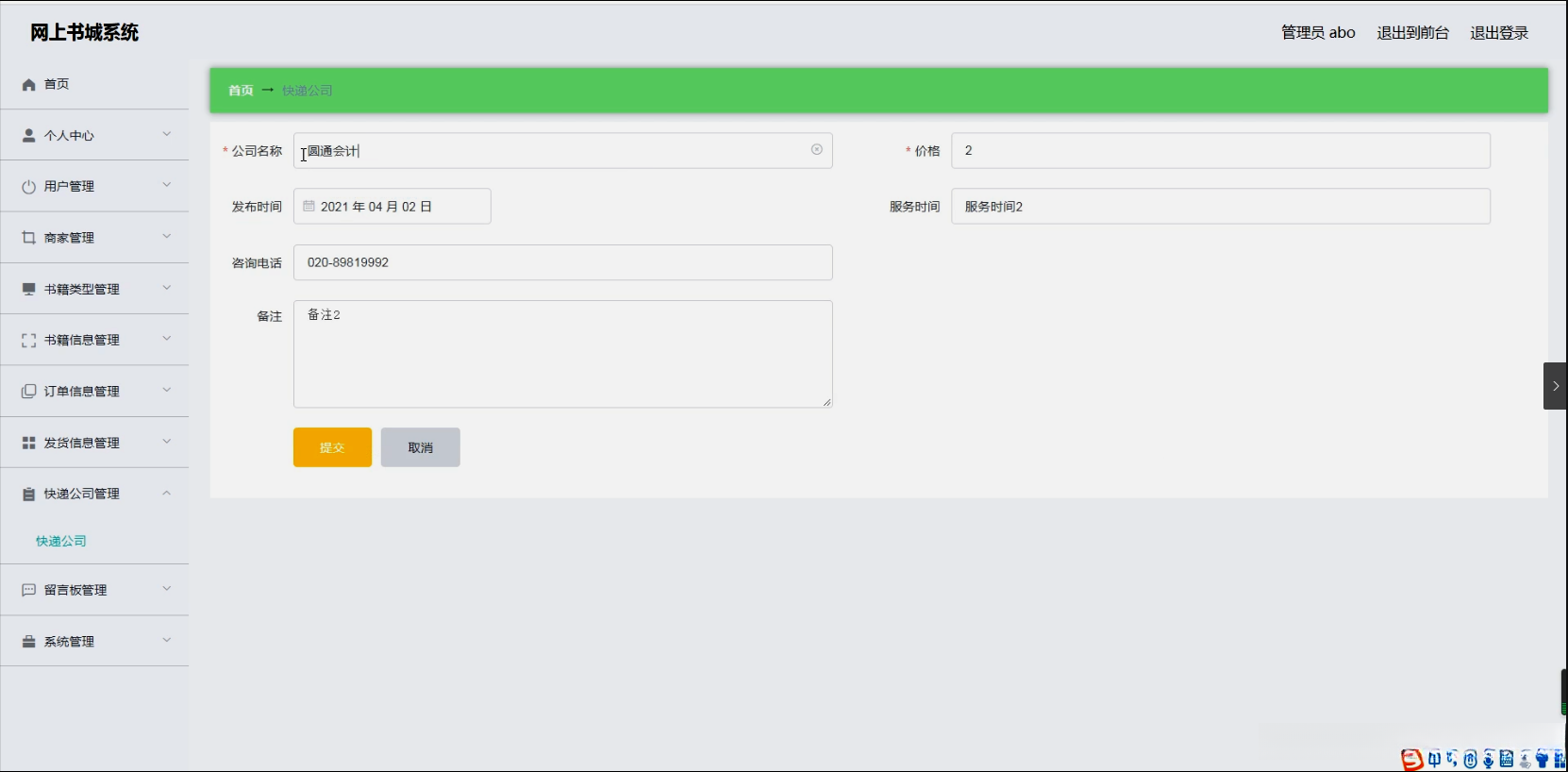 - 快递公司与发货信息模块 研究快递服务对接方案及其信息服务系统开发设计。