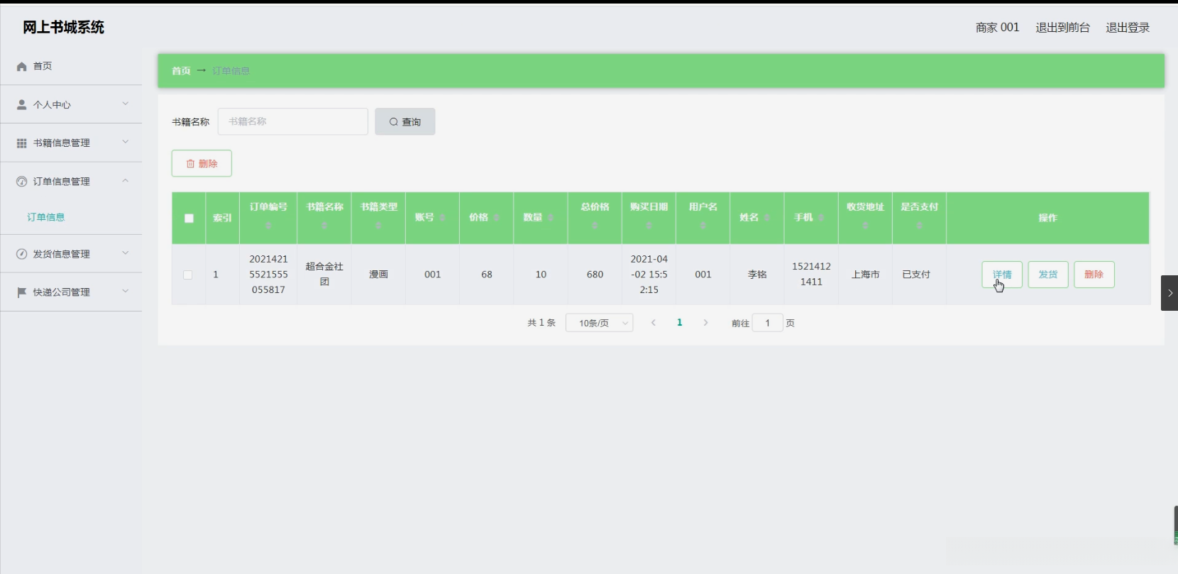 - 订单信息模块 研究订单生成、查询及状态变更等功能在系统中的实现方案,并确保订单处理的准确性和及时性。