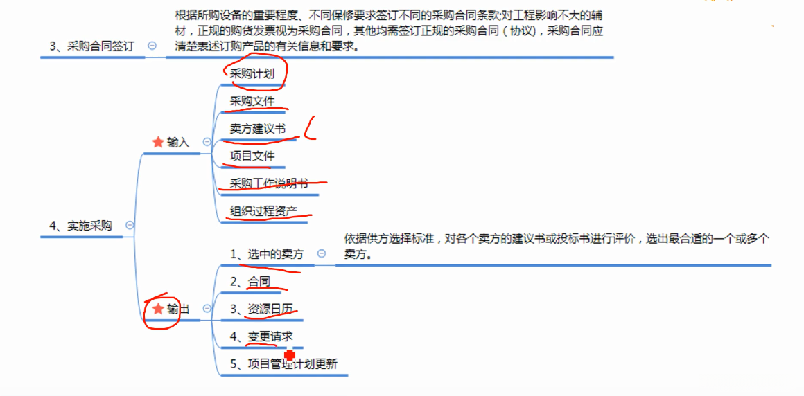 然后就是实施采购。这里实施采购的输入以及输出要记住。