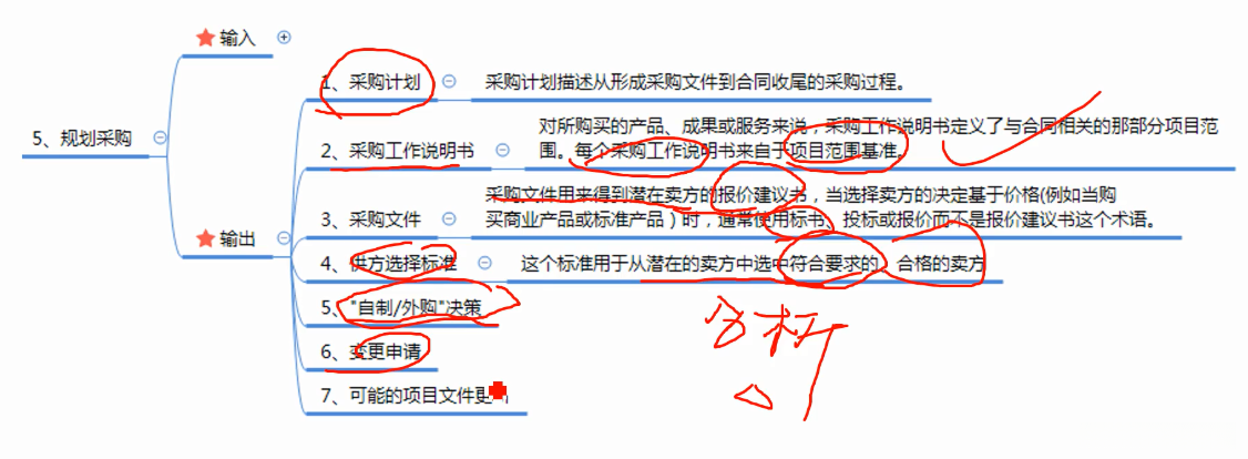 而工作说明书(procurement documentation)属于采购文档系列(document category)。作为制定项目采购计划的结果(outcome of planning),编制项目采购计划的输出被归类于这个系列中。这实际上涉及输入环节。