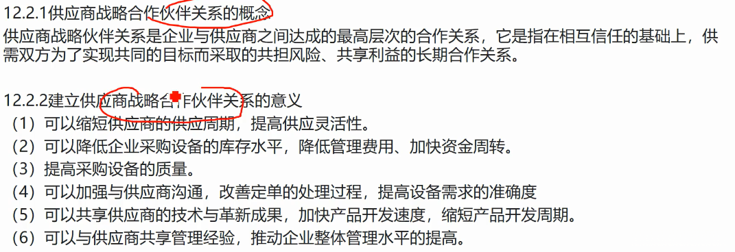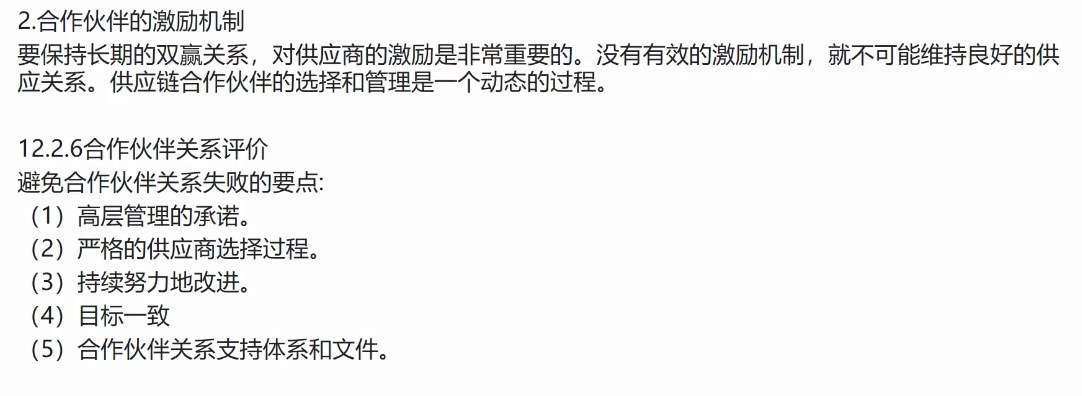 12.2.1 供应商战略合作伙伴关系的相关概念,这一项的内容也很重要,自己读一下就可以了