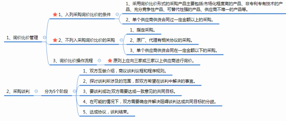 实施采购中,首先是询价比价管理,第二是采购谈判,第三是采购合同签订。