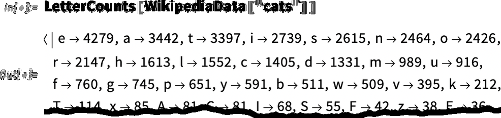 我们可以做的一件非常简单的事情就是取一个英文文本样本,然后计算不同字母在其中出现的频率。因此,例如,这会计算维基百科关于“猫”的文章中的字母: