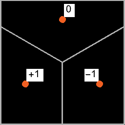 我们的目标是获取对应于位置 { x , y } 的“输入”——然后将其“识别”为与它最接近的三个点中的那个。或者,换句话说,我们希望神经网络计算 { x , y } 的函数,例如: