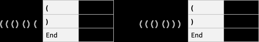 考虑一种由 ('s 和 )'s 序列形成的“语言”,其语法指定括号应始终平衡,如解析树所示: