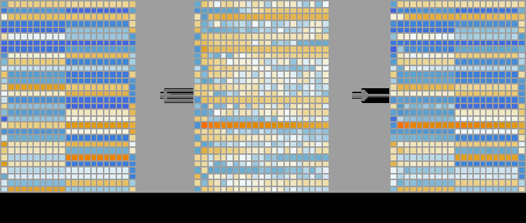 每个标记的嵌入向量的元素显示在页面下方,在整个页面中,我们首先看到一系列“ hello ”嵌入,然后是一系列“ bye ”嵌入。上面的第二个数组是位置嵌入——其看起来有点随机的结构正是“碰巧学到的”(在本例中为 GPT-2)。