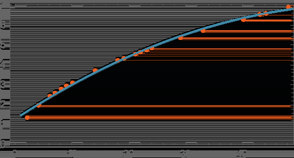 我们怎么知道在这里尝试使用直线?在某种程度上我们没有。这只是数学上简单的东西,我们已经习惯了这样一个事实,即我们测量的大量数据被证明是数学上简单的东西。我们可以尝试一些数学上更复杂的东西——比如 a + b x + c x 2 ——然后在这种情况下我们做得更好:
