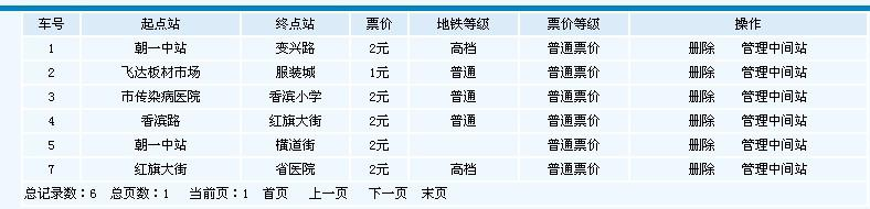 本文首先对南京市地铁线路查询系统的需求进行了分析,包括功能需求和非功能需求;接着介绍了系统总体设计思路、方案选择和数据库设计;随后详细阐述了系统主要功能模块的实现过程;最后给出系统的测试方案。本南京市地铁线路查询系统主要具有地铁查询、用户留言、用户管理和后台车次管理功能。地铁查询包括车次、站点、换乘等方案的查询;用户留言主要是收集用户的留言信息,以方便根据用户提供的留言信息或是提出的建议对系统进行修改和完善;用户管理功能主要是删除用户信息和修改用户注册的基本信息;后台车次管理功能主要是添加车次和站点功能、更新车次和站点功能、删除车次和站点功能。本系统基于B/S模式开发,采用JSP技术,SQL Server 2005构建后台数据库。