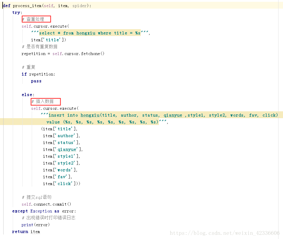之前一篇文章,写了scrapy入门博客。至于数据库建表也不再赘述。接下来介绍如何将数据进行mysql入库。 其实很简单,数据源都拿到了,入库就是信手拈来,着重介绍利用pymysql连接mysql数据库...