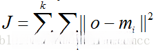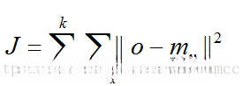 误差平方和准则J就是所有簇的簇中各个对象与均值间的误差平方和之和,即: