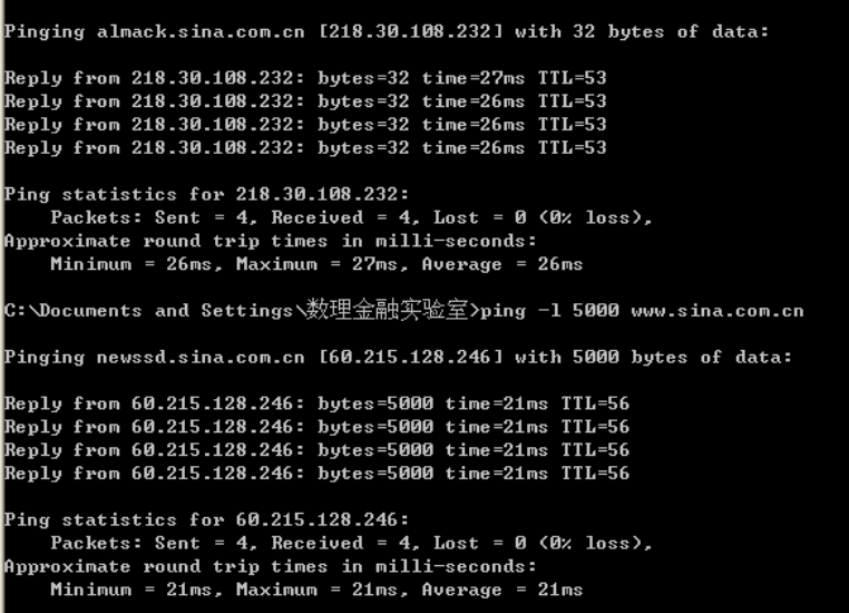 - 若主机发送的数据被分成4个片段,则Ping命令中的数据包最小长度和最大长度应设置为多少,并记录于文档中。