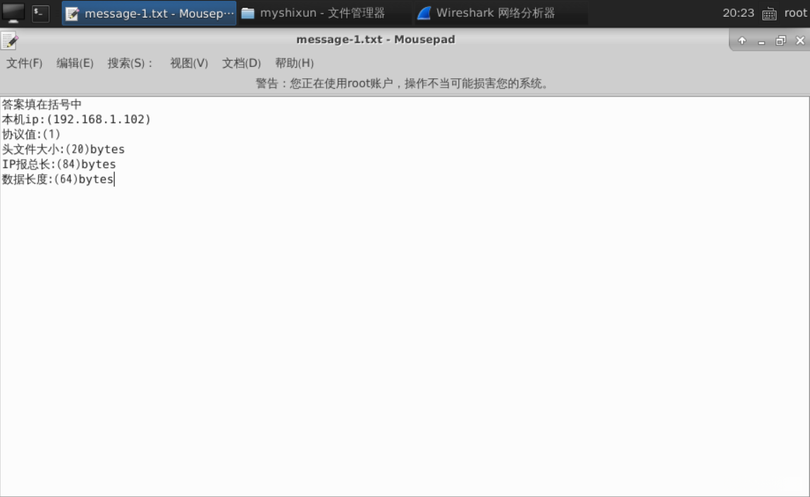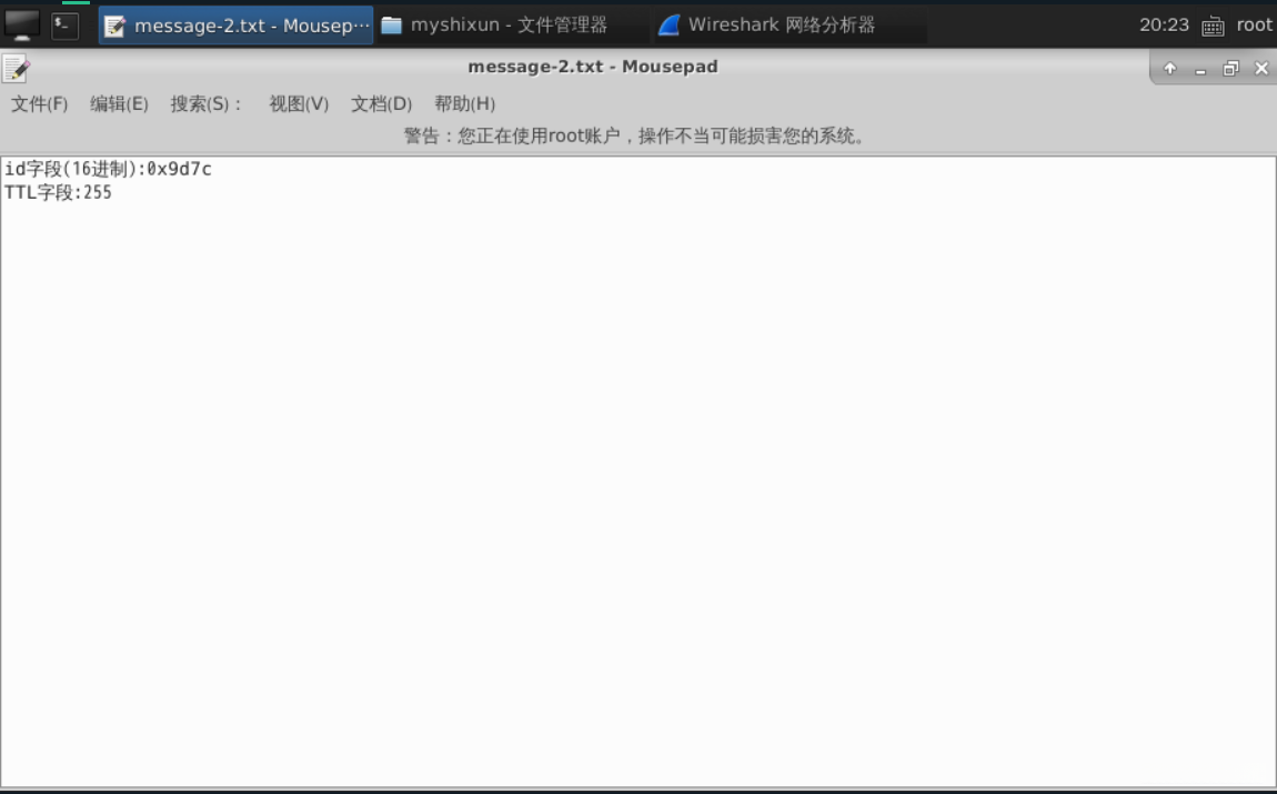 - 打开日志文件message-3.txt,并将获取的信息记录于该文档中。