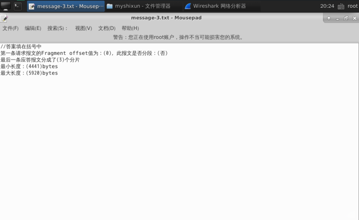 本关任务:ICMP 响应包中 IP 的分片分析。