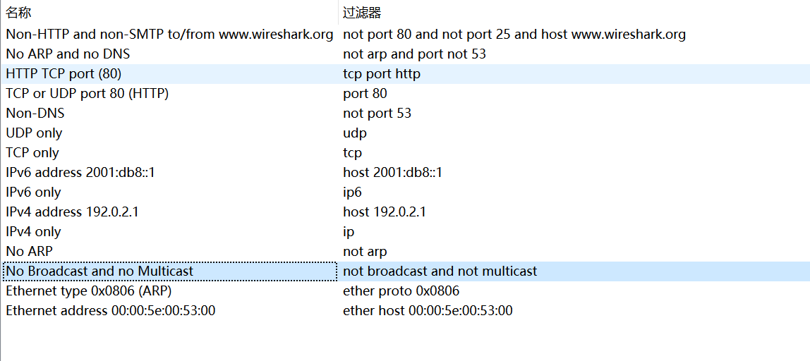 启动 Wireshark 并进行报文捕获操作。为了确保实验的有效性,请仅需捕获与当前实验相关的报文。请将 Wireshark 的 Captrue Filter 配置为 No Broadcast 和 no Multicast 两个参数的组合。
