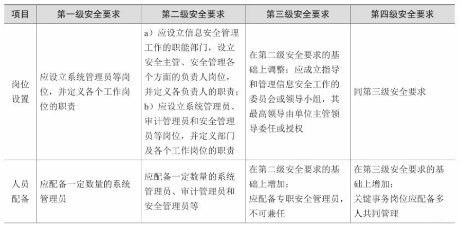 信息安全管理需明确各岗位的安全责任。信息安全组织机构及职责的确立明确了组织层面的信息安全管理职能;然而在实际执行中必须逐层明确到具体人员:根据《等级保护制度》规定要求:应当设立安全主管、信息安全各领域的负责人岗位;并定义各负责人的具体工作职责;同时设立信息安全管理的主要人员包括:系统管理员、网络管理员以及审计管理员;并明确规定各岗位的具体工作职责。