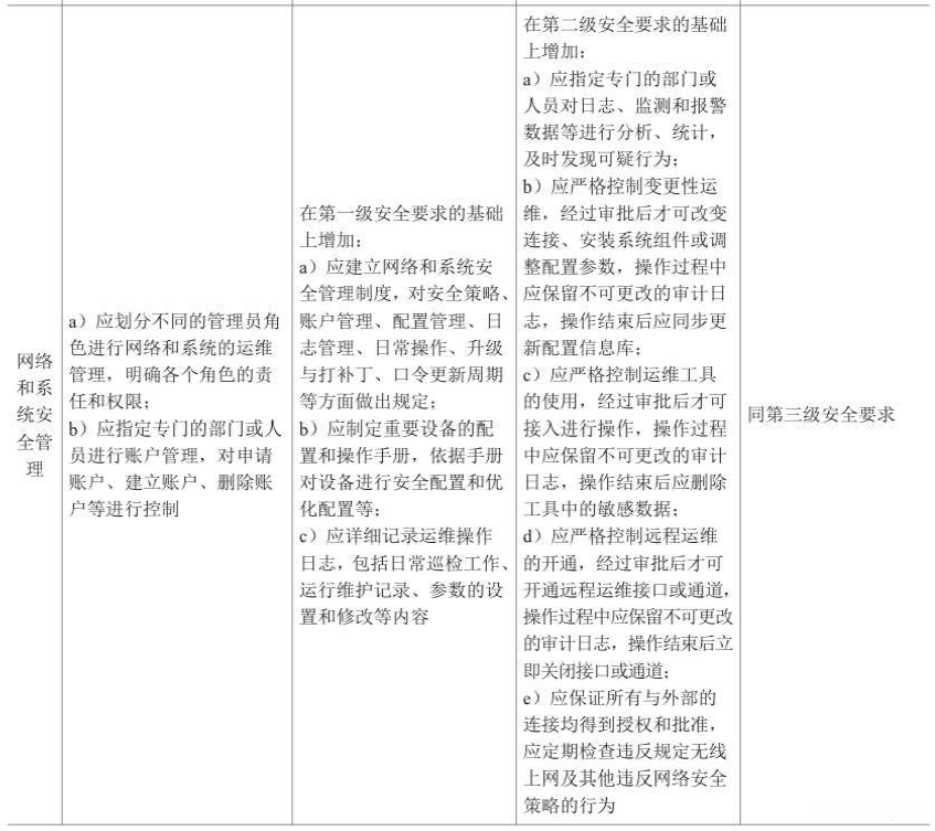 按照等级保护的要求,网络和系统的安全管理包括以下内容。