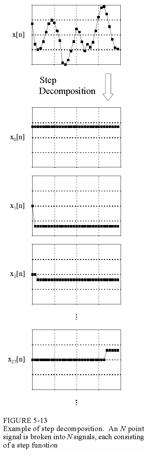 以一系列像阶梯形的信号去分解信号的方法被称为阶跃分解法。这种方法本质上与傅里叶分析有关。