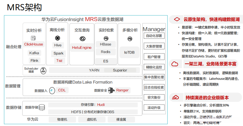 MRS数据湖解决方案,实现三湖+集市业务场景,满足建设数据湖过程中不同各阶段的需求.